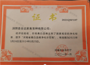 公(gōng)司简介    汤阴县全达家禽育种有(yǒu)限公(gōng)司,注册资金2075万元。拥有(yǒu)“全达”牌注册商(shāng)标。公(gōng)司占地面积600亩,拥有(yǒu)五座存栏2万套祖代鸡养殖场,一座存栏